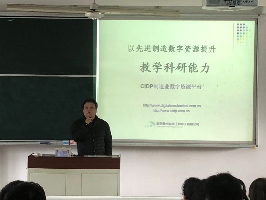 11月20日下午,“以先进制造数字资源提升教学科研能力”CIDP制造业数字资源平台培训讲座在教学楼F402室举行,化学工业出版社数码科技出版分社社长张立担任主讲,40余名师生参加讲座。