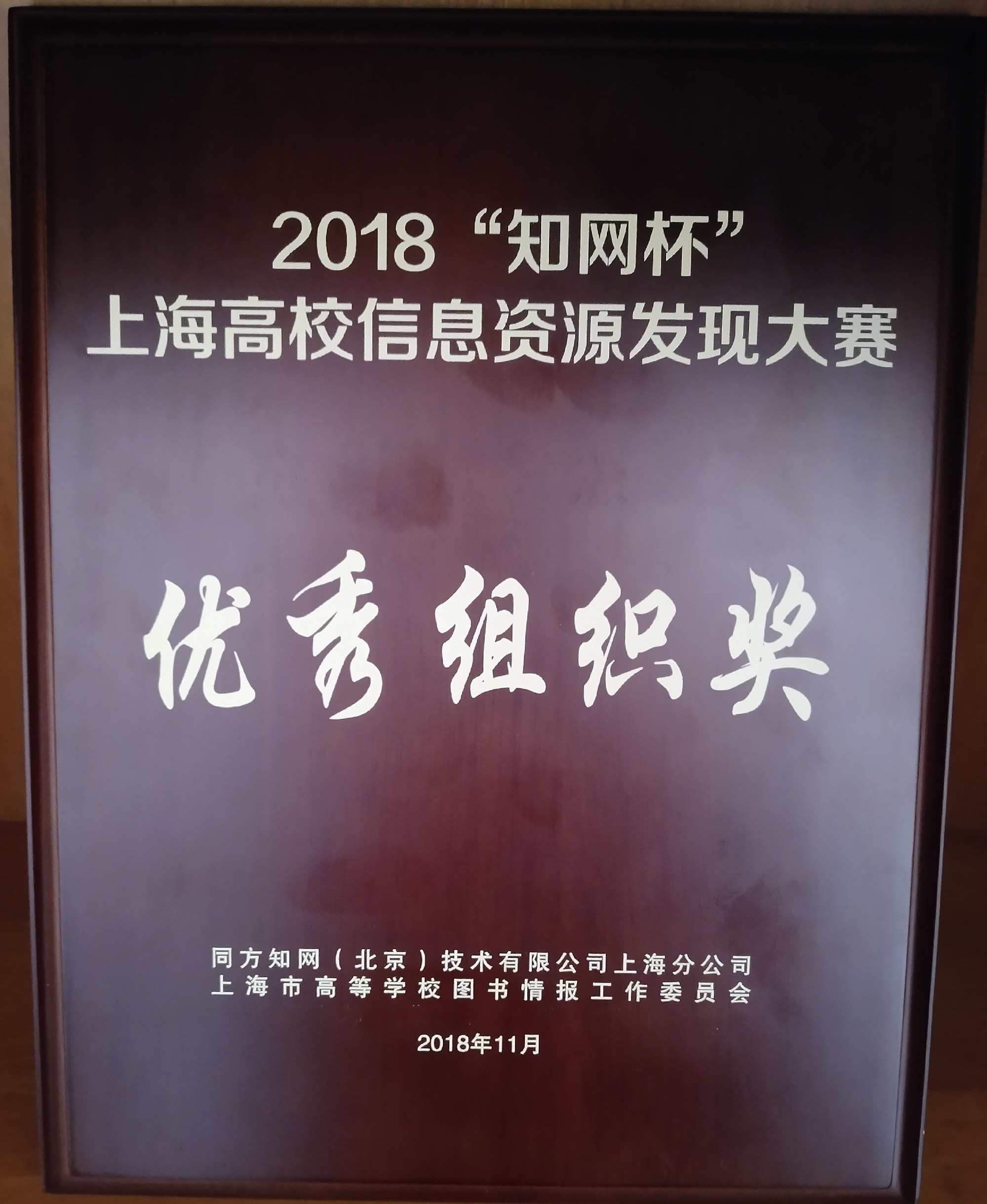 近日,历时近两个月的2018“知网杯”上海高校信息资源发现大赛圆满落幕,我校获得个人三等奖1项,并获得“优秀组织奖”。校图书馆馆长宓一鸣应邀担任大赛嘉宾,并为获奖者颁奖。
