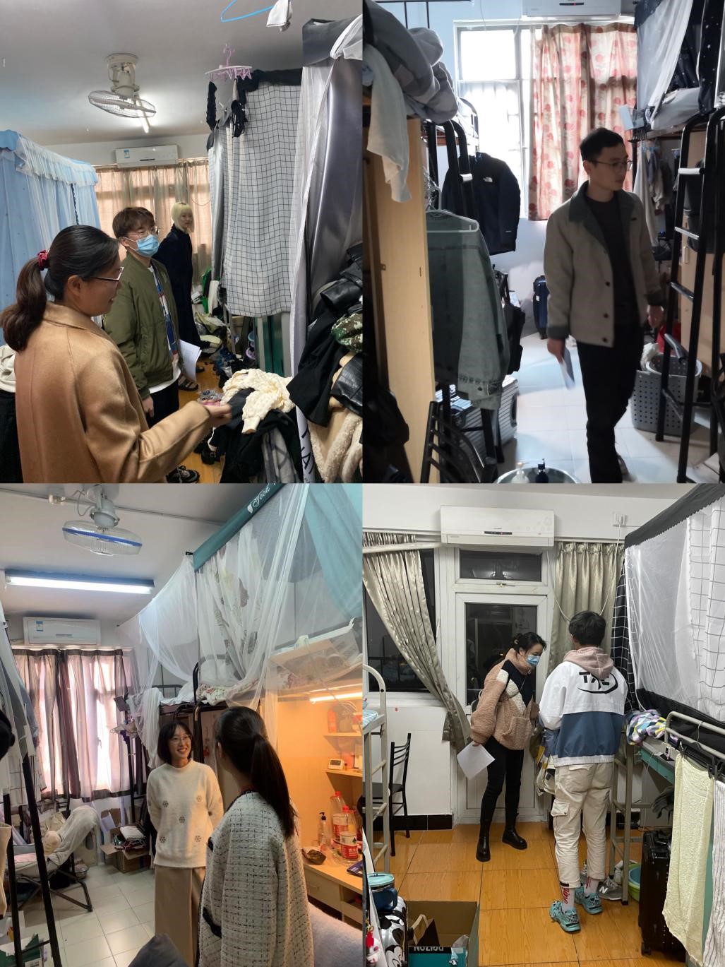 为贯彻落实学校宿舍安全工作要求,进一步增强学生安全意识和环境卫生意识,创建安全、整洁、文明的宿舍环境,纺织服装学院全面开展了宿舍安全隐患和卫生大检查活动。近期,在学院党委副书记谢志霞老师的带领下,全体辅导员对学院所属本科生、研究生宿舍楼开展检查工作。