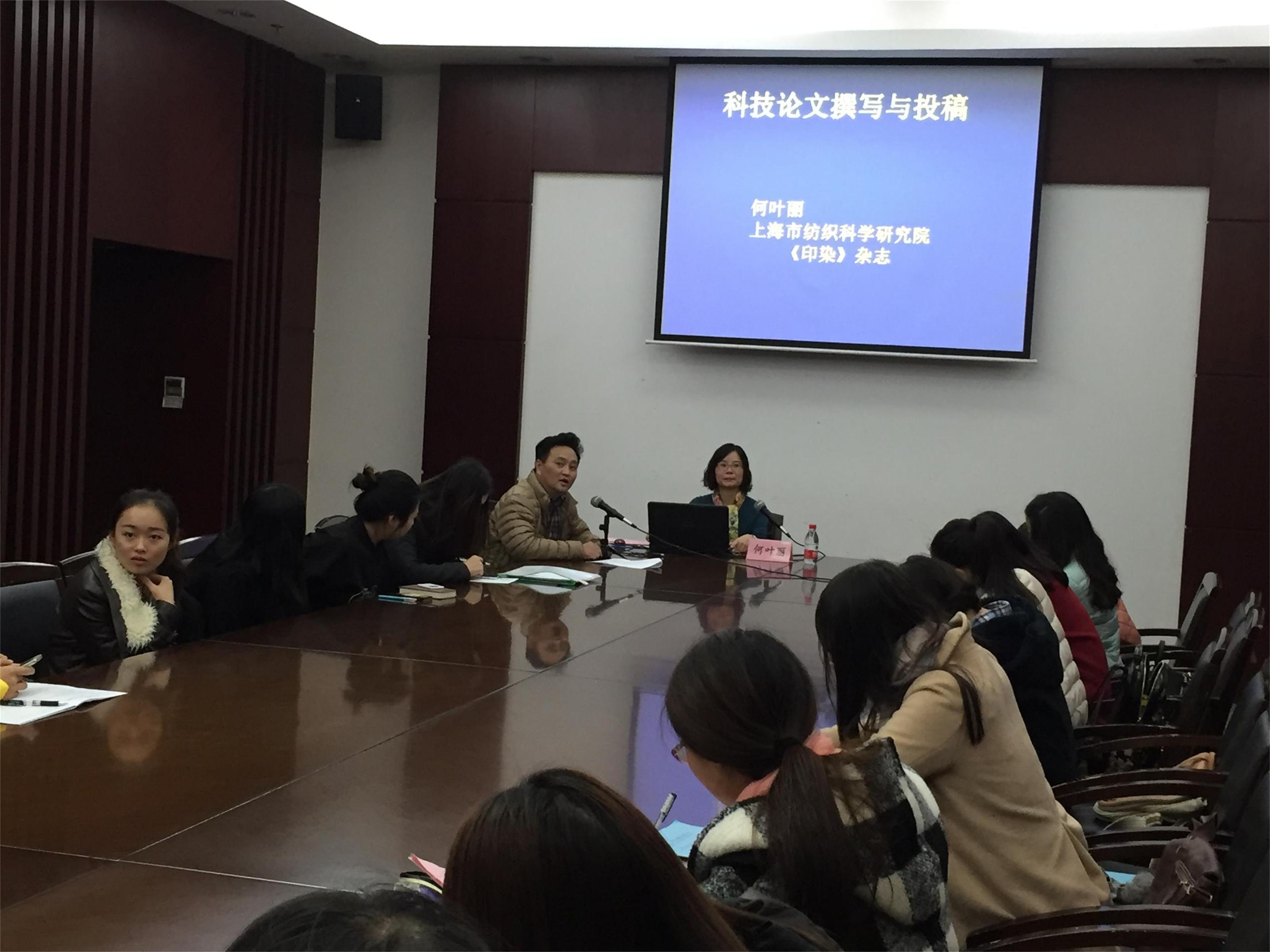 为进一步提升学院青年教师学科能力和研究生论文撰写能力,上午9:30在图文信息中心第五报告厅,服装学院特别邀请了上海市纺织科学研究院信息情报中心副主任、期刊媒体部经理、核心期刊《印染》杂志主编
