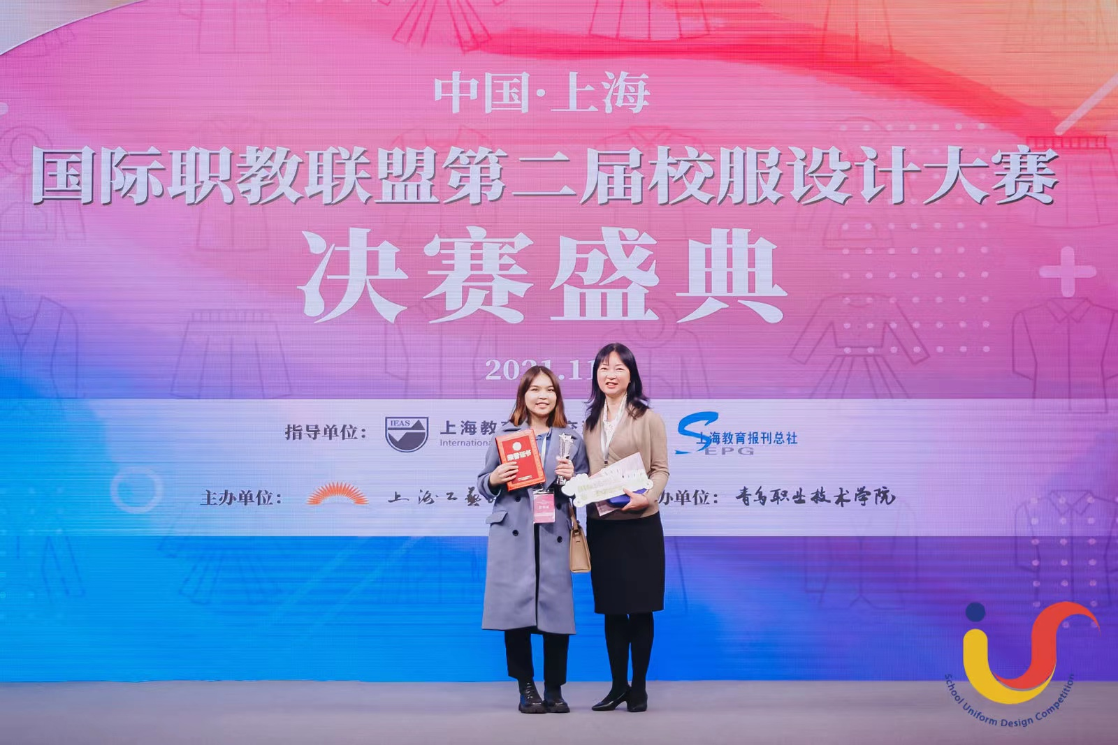 11月26日下午,国际职教联盟第二届校服设计大赛决赛盛典在上海工艺美术职业学院嘉定校区举行,我校哈萨克斯坦籍国际学生Urumbetova Ayazhan(阿亚)同学摘得大赛银奖。本次大赛由上海市教育国际交流协会、上海教育报刊总社联合指导,上海工艺美术职业学院主办。我校国际合作与交流处处长、国际教育学院负责人王勤老师作为嘉宾应邀出席盛典。