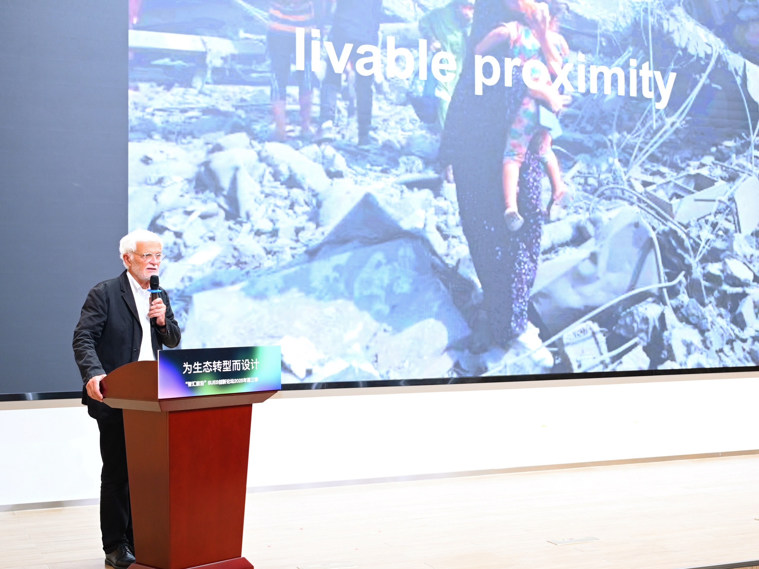 在主旨演讲环节,国际社会创新与可持续设计联盟主席、米兰理工大学荣誉教授Ezio Manzini深刻批判了现代城市因功能分区而导致的社区疏离与生态问题,进而提出了构建“宜居邻近性”的愿景。他倡导通过融合前瞻性政策与社区自发创新,将城市公共空间转化为促进人际交往与关怀的平台,最终打造一个富有韧性与归属感的“关爱型城市”。