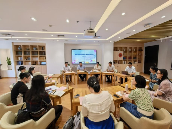 为凝聚共识、共绘蓝图,9月26日,管理学院在行政楼工会之家举办了国际化发展战略教师交流座谈会,校领导史健勇,管理学院党委书记范君晖、院长胡斌出席会议,有海外留学背景的教师代表参会。座谈会由管理学院党委副书记张强主持。