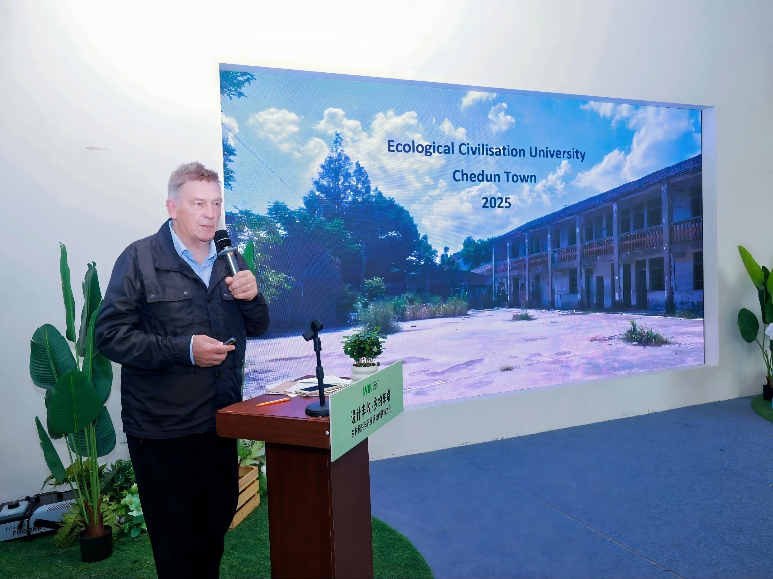 9月30日,由上海工程技术大学和松江区车墩镇人民政府联合主办的2025WDCC世界设计之都大会同城活动“设计丰收•乡约车墩——乡村振兴与产业融合的创新之径”在松江区车墩镇如心社举行。校长娄永琪,松江区副区长陈容,校党委副书记、副校长徐阳,英国皇家艺术学院院士John Thackara等出席活动。松江区农业农村委、区经委、区规划资源局、车墩镇政府相关负责人,乡村设计、乡村文旅领域专家,企业、投资界代表,同济大学与上工程师生代表,设计丰收项目合作伙伴共同参加。