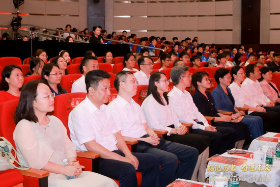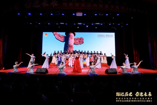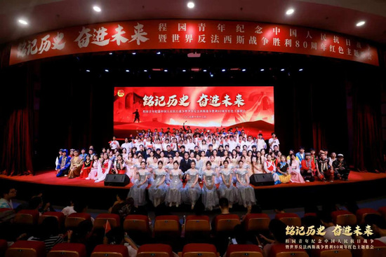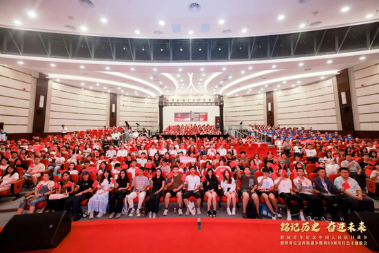 10月13日,“铭记历史 奋进未来”程园青年纪念中国人民抗日战争暨世界反法西斯战争胜利80周年红色主题歌会于松江校区志宏堂举行。中共上海市教育卫生工作委员会⼀级巡视员郑锦,松江区委副书记、组织部部长时建英,东华大学党委副书记王治东,上海对外经贸大学党委副书记、副校长沈艺,上海立信会计金融学院党委副书记尹晨,上海视觉艺术学院党委书记吴嘉敏,上海工程技术大学党委副书记、副校长徐阳,市委党史研究室、市教卫⼯作党委等单位职能处室和松江区委办有关领导,以及上工程师生代表共计1000余人出席现场活动。近40000人次观看图片直播,上工程青年共赴青春“大思政课”。