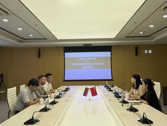 Dmitrii对我校的热情接待表示感谢。他表示,中俄两国的深厚友谊为教育领域的深入互通创造了得天独厚的优势条件,圣彼得堡国立工业技术与设计大学在工业设计等领域处于国内领先地位,近年来与中国高校的合作卓有成效,非常期待与上海工程技术大学建立紧密、务实的合作伙伴关系。