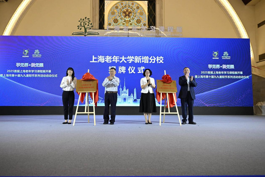 朱晓青与上海开放大学副校长、上海老年大学校长王松华共同为上海老年大学上海工程技术大学分校揭牌。这标志着我校老年大学积极融入老年教育发展的大格局,进一步拓展与优化老年教育资源,为更多老年人提供优质的学习平台。