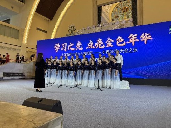 我校老年大学舞蹈基础(民族民间舞)班学员的舞蹈《茉莉花》和声乐合唱班学员的合唱《四度赤水出奇兵》亮相“学习之光,点亮金色年华”上海市第十届九九重阳节展演,赢得了现场观众的阵阵掌声,展现了上海工程技术大学老年大学学员们的艺术才华和积极向上的生活态度。