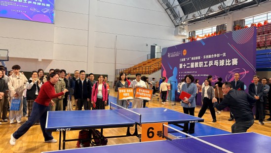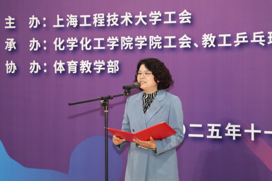 11月14日下午,学校第十二届教职工乒乓球比赛在松江校区体育馆激情开拍。本次赛事由校工会主办,化学化工学院、教职工乒乓球协会承办,校体育部协办,吸引了来自全校60余名教职工运动员同场竞技,共同奉献了一场精彩纷呈、友谊与竞技并存的文化体育盛宴。校党委副书记、工会主席朱晓青,校工会常务副主席、妇工委常务副主任李霞,化学化工学院院长李亚、体育部党委书记李杨、体育部主任张建新出席开幕式。开幕式由化学化工学院党委书记宋勤健主持。