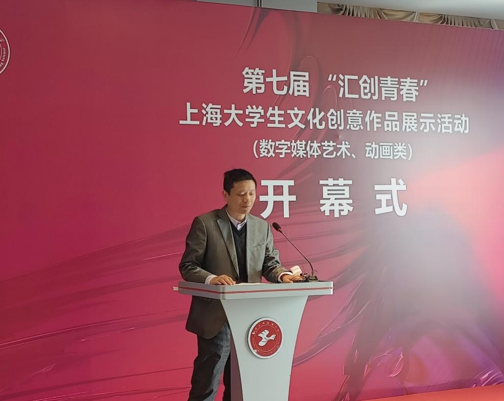 11月4日下午,由中共上海市教育卫生工作委员会、上海市教育委员会主办,我校承办的第七届“汇创青春”上海大学生文化创意作品展示活动(数字媒体艺术、动画类)在松江校区行政楼19楼开幕。教务处处长饶品华、国际创意设计学院院长顾艺、艺术设计学院院长高瞩等出席开幕式。开幕式由国际创意设计学院副院长徐蓉蓉主持。