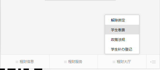2. 公众号下方菜单“程财大厅”中的“学生缴费”