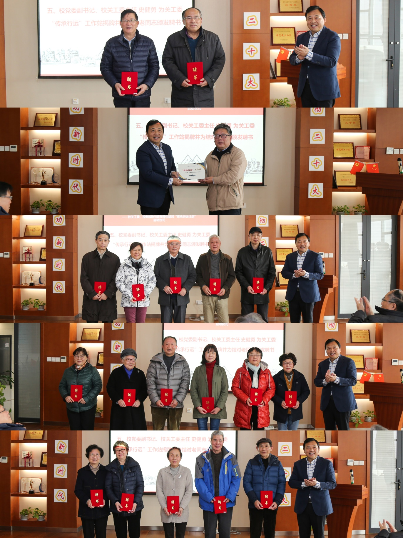 会上,校党委副书记、校关工委主任史健勇为关工委“传承行远”工作站揭牌并为结对老同志颁发聘书。