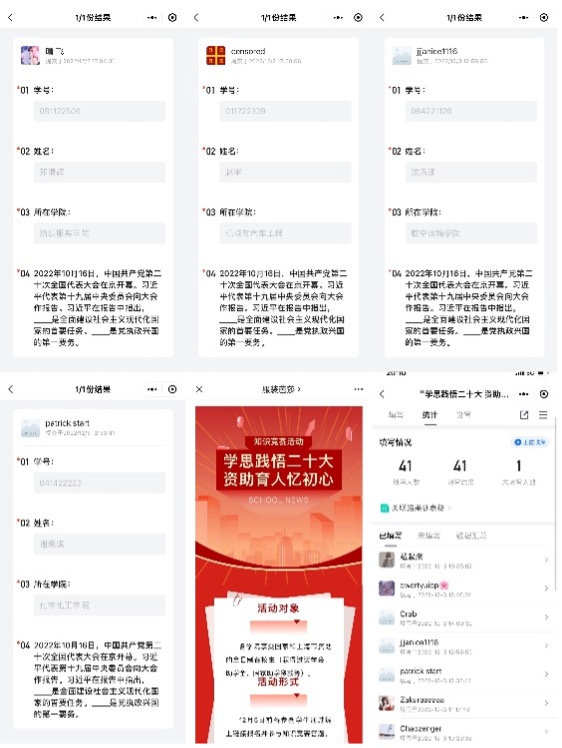 竞赛紧紧围绕党的二十大及学生资助相关主题展开,通过线上答题方式进行。旨在通过“以赛促学、以学促行”引领广大学子深刻领悟和把握党的二十大的精神实质和丰富内涵。目前已吸引包括机械与汽车工程学院、化学化工学院、航空运输学院在内的40余名学生参与。后续,纺织服装学院会及时进行成绩发布,并通过“服装芭莎”公众号、微信群及时发布相关通知,公布活动的最新进展。