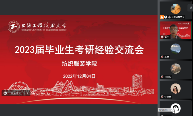 为帮助2023届考研学生摆正心态、坚定信心、成功上岸,12月4日,纺织服装学院通过腾讯会议举办考研经验分享交流会,2022届毕业生李根阳、张展、晋艺、许爽爽、邵佳纹、李彤6位同学分享考研经验与方法。会议由就业辅导员唐全老师主持。