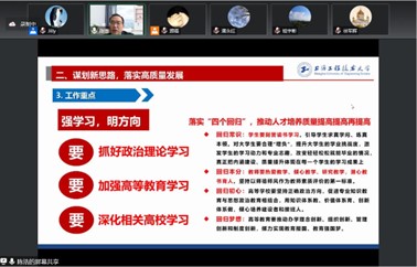 陈浩教授带领全体教师学习了党的二十大报告的主要内容,从党的二十大的主题和中国共产党的中心任务把握中心发展主方向,深入细致地阐述了中国式现代化的本质要求、前进道路上把握的重大原则,围绕教育优先发展、办好人民满意的教育,强调“落实新时代党的建设总要求,坚定不移全面从严治党”,表明推进新时代党的建设开始向全面从严治党这一伟大实践聚焦,我们必须牢记,全面从严治党永远在路上,党的自我革命永远在路上。