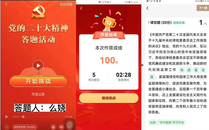 为切实把广大教职工的思想和行动统一到党的二十大精神上来,把力量凝聚到党的二十大确定的各项任务上来,航飞学院还在线下持续地开展了以“贯彻二十大·建功新时代”为主题的党的二十大精神知识竞答活动,答题内容涵盖了党的二十大报告中的主要内容和重要精神。