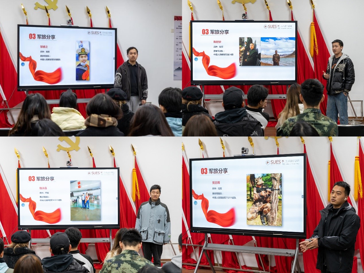 退伍学生代表邹睿之、蔡佳祥、钱永昌、党志辉和陈世钞先后分享了自身的军旅生涯,生动形象地展示了军营真实一面。他们表示在各自的军旅生涯期间,尽管苦不言堪,更多却是感受到精神的馈赠,现如今我们站在百年未有之大变局的临界点,更是感慨万分,无论是守卫边疆的陆军战士,飘扬远航的海军舵手,壮志凌云的空军地勤,还是保障维稳的武警士兵,他们都在默默无闻为了祖国的繁荣昌盛而负重前行,为我们树立了优秀的价值标杆,值得我们学习。