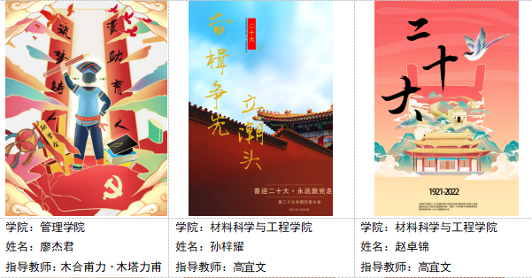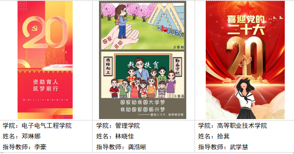 承办单位共收到电子电气工程学院、管理学院、材料学院、航空运输学院\高职学院等学院同学的海报作品,学生们通过海报表达自己的求学圆梦之路,表达自己的爱国情,喜迎二十大召开。展现当代大学生“仁以知恩图报为德,滴水之恩当涌泉相报”的美德,以实际行动为回报国家和社会,在新征程上接续奋斗,成为了祖国新一代的栋梁。