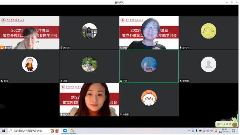 12月12日,为总结本年度的统战工作,组织党外教师和少数民族教师进一步学习二十大精神,马克思主义学院召开“2020年度统战工作总结暨党外教师二十大报告专题学习会”。马克思主义学院党总支书记董旖旎、副院长及统战委员刘芳、党外教师、少数民族教师、统战协调员张烨,共同出席会议。