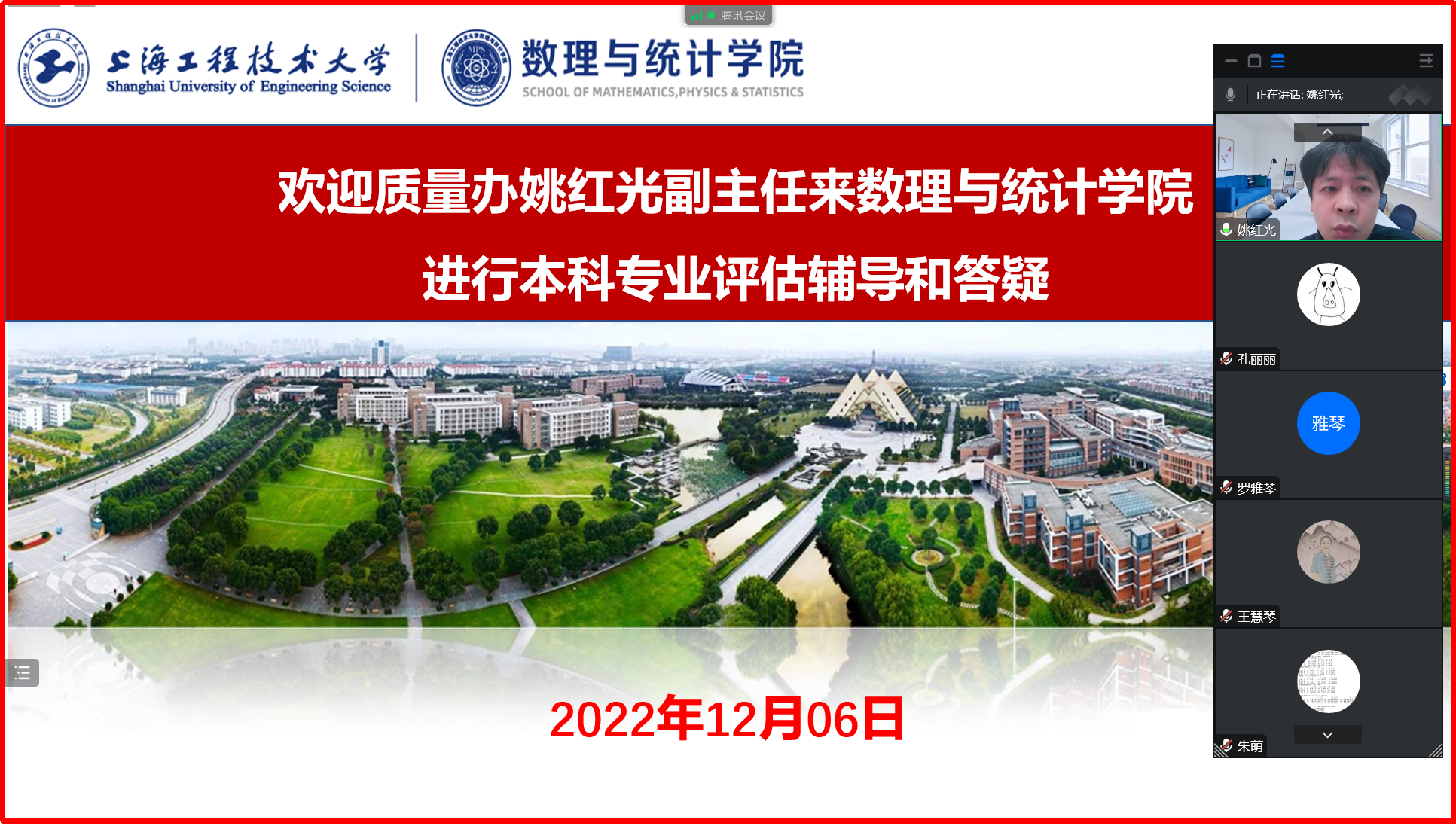 为进一步推进数据计算及应用专业、光电信息科学与工程专业2023年本科专业评估工作。12月6日,数理与统计学院召开本科专业评估暨2023年审核性评估推进会,数理与统计学院院长王国强、光电物理系和统计与数据计算系全体教师线上参加会议,会议由吴建宝副院长主持。会议特别邀请学校质量办姚红光副主任就本科专业评估开展专项讲座和指导。