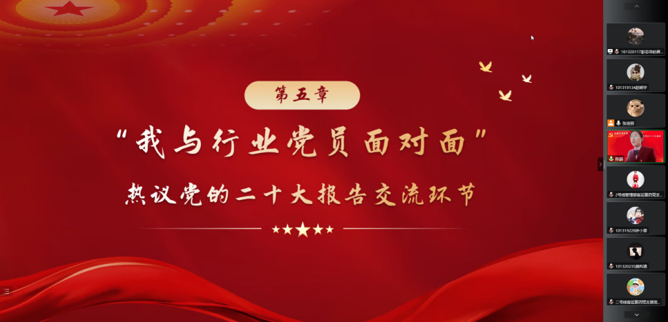 双方支部其他成员结合自身对党的二十大精神的学习心得,开展了广泛分享讨论,激发思想共鸣,鼓励学生党员、入党积极分子立足行业使命,立标行业榜样,将二十大精神学深、悟透、做实。