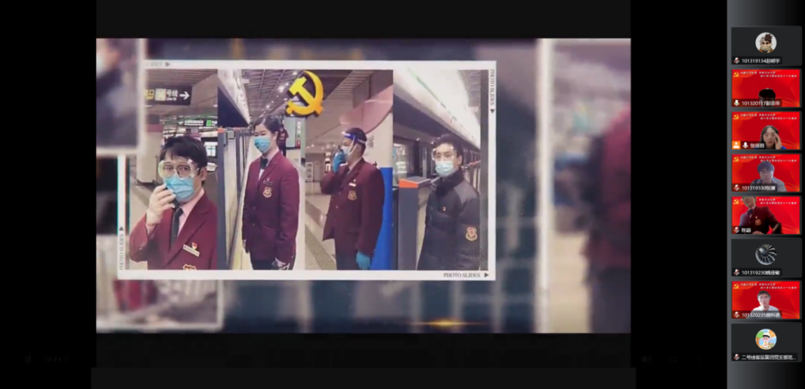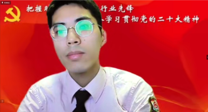 活动在上海地铁2号线管理部客运第四党支部的“党员在基层-致敬地铁‘逆行者’”主题短视频中拉开序幕。在运营管理学生党支部二十大精神学习分享环节中,支部党员施科迪进行“学习领会二十大精神 准确把握十个明确”主题分享。