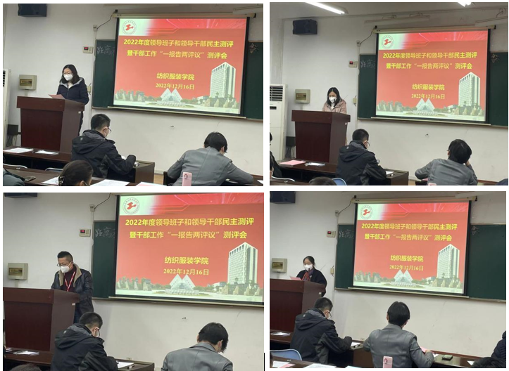 12月16日下午,纺织服装学院在艺术楼C310召开2022年度二级教代会民主评议中层领导班子和领导干部工作会议。学院党政班子成员、院教代会代表、党支部书记及师生代表等出席测评会。会议由学院党委书记朱君璇同志主持。