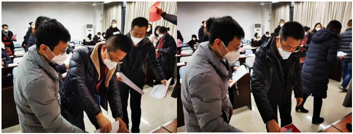 参会人员认真听取了各位领导述职报告,并根据述职报告情况进行了打分,同时教代会代表完成教代会民主测评的评议。