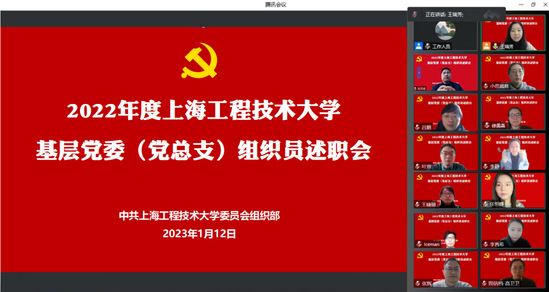 为深入贯彻落实党的二十大精神,有效落实上海市教卫《关于加强上海高校组织员队伍建设的意见》,进一步加强我校组织员队伍建设,激发基层党建活力,1月12日上午,学校2022年度基层党委(党总支)组织员述职会以线上会议形式举行。校党委常委、组织部部长朱洪春出席会议并讲话。各基层党委(党总支)组织委员、组织员、党支部书记代表以及组织部同志等参加会议。会议由校党委组织员王瑞芳主持。