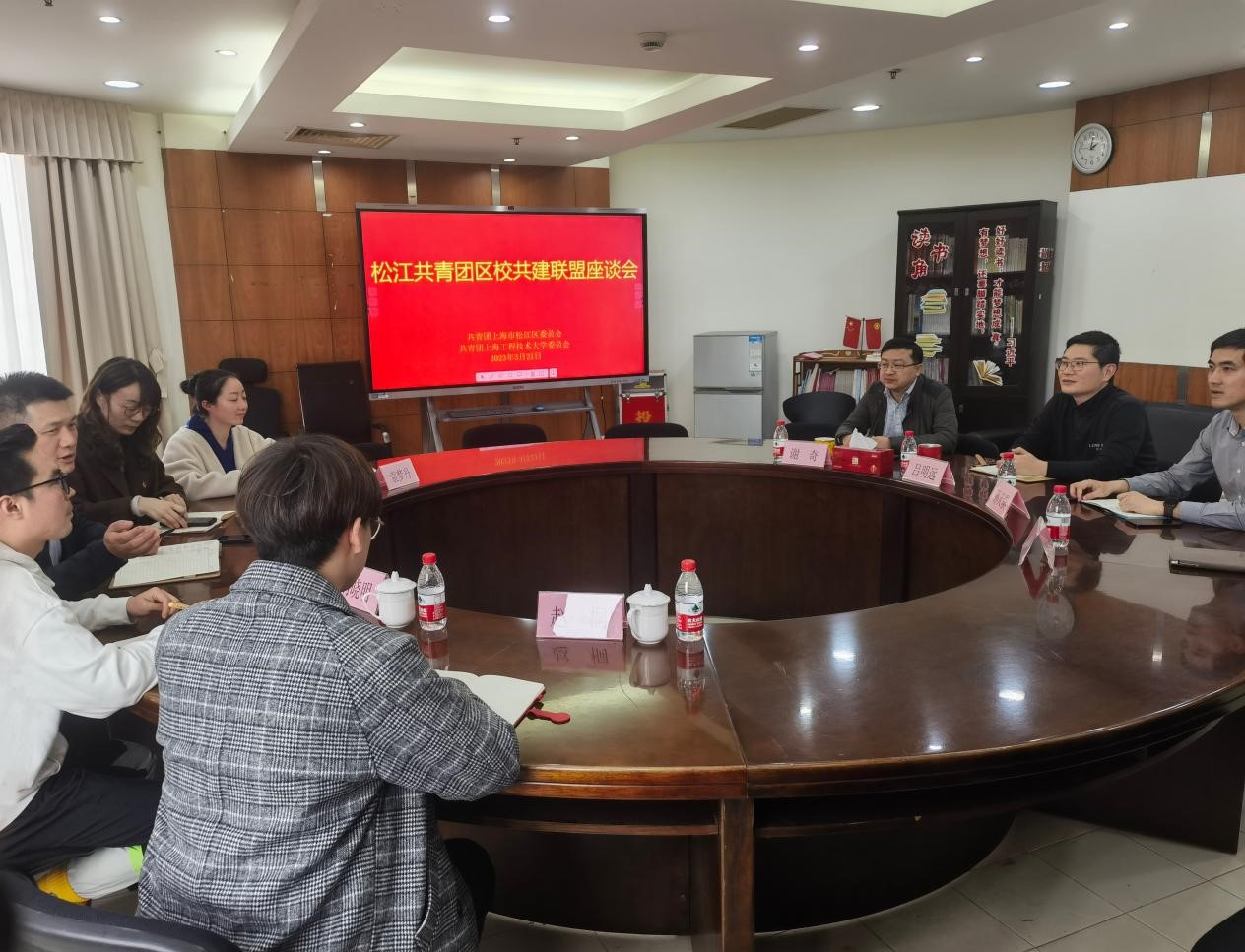 3月21日下午,上海工程技术大学团委书记陈翼然,副书记闵丹、刘晓明,挂职干部袁梦丹、赵桐一行前往松江团区委参加松江共青团区校共建联盟座谈会。松江团区委书记吕明远、副书记孙天琪、办公室主任谢奇、办公室副主任陈晨出席会议,双方聚焦提升共青团实践育人水平展开深入交流和讨论。