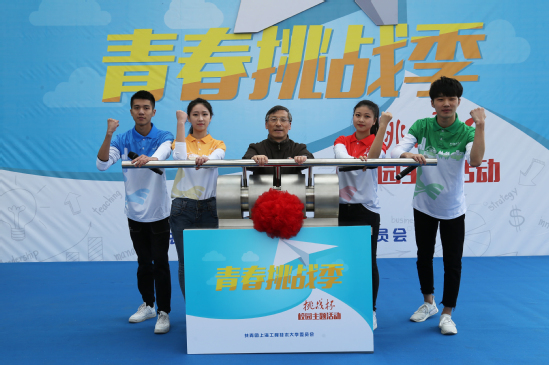 鲁嘉华副校长和“校园挑战大使”共同启动“青春挑战季”,寓意工程大创新创业者“撸起袖子加油干”!