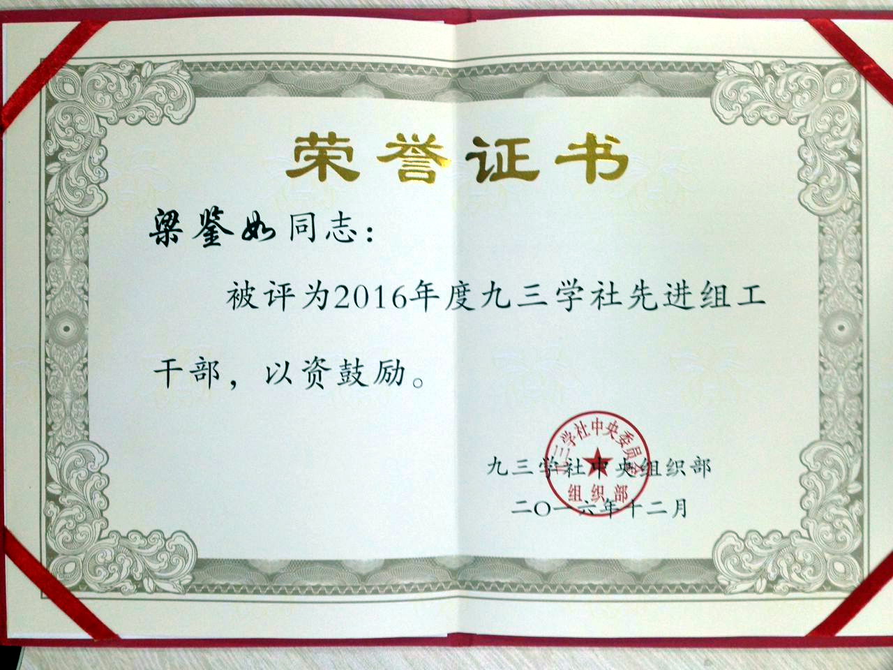 梁鉴如老师是我校电子电气工程学院老师,九三学社工程大委员会二支社副主委。2016年度,他被九三学社中央组织部评为九三学社中央先进组工干部。