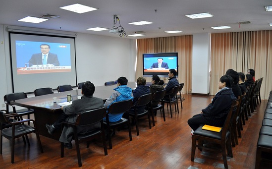 3月15日上午,机械工程学院党委中心组在行政楼1208会议室组织全国“两会”专题学习会,集体收看李克强总理会见中外记者招待会实况转播。学习会由学院党委副书记王东阳主持,学院中心组成员参加学习。