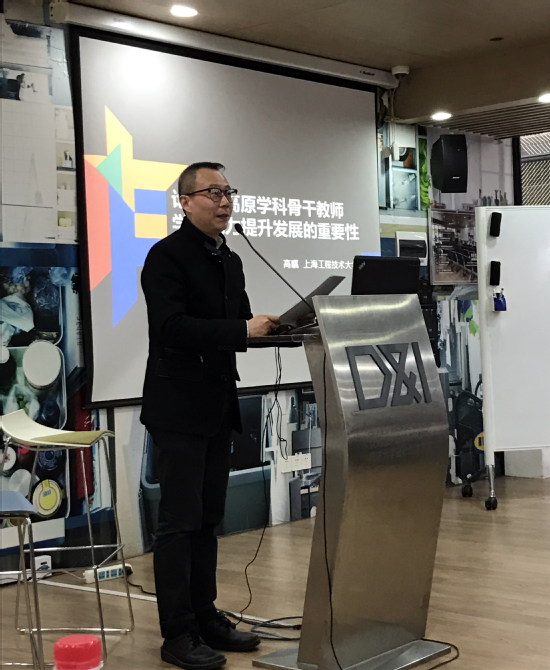 高瞩院长在会上针对高峰高原学科骨干教师学术能力提升及发展做了发言。他从高峰学科的任务及目标、设计学IV类高峰学科的建设任务、骨干教师的遴选条件与现状、教师学术能力提升意义和途径等方面进行了阐述。