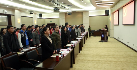 会上,学生工作部(处)长、研工部长朱蓓介绍了培训班整体概况。此次培训从3月23日开班至4月底结束,时间跨度一个月,培训对象为各学院党委(总支)副书记、专职辅导员、学生工作部(处)、研工部学生工作者共115人,培训环节坚持理论性与实践性相统一,共设置5场高质量的主题报告,内容涵盖全国高校思想政治工作会议精神解读、大学生心理突发事件的应急处置、“课程思政”、网络思想政治教育、高校学生事务管理与思想政治教育等多方面,同时辅以实践学习环节和交流研讨环节。培训班施行严格考核管理制度,成立了班委。培训班班长、管理学院党委副书记范君晖代表全体政工干部发言,全体辅导员在党旗下庄严宣誓,立志成为优秀的学生工作者。