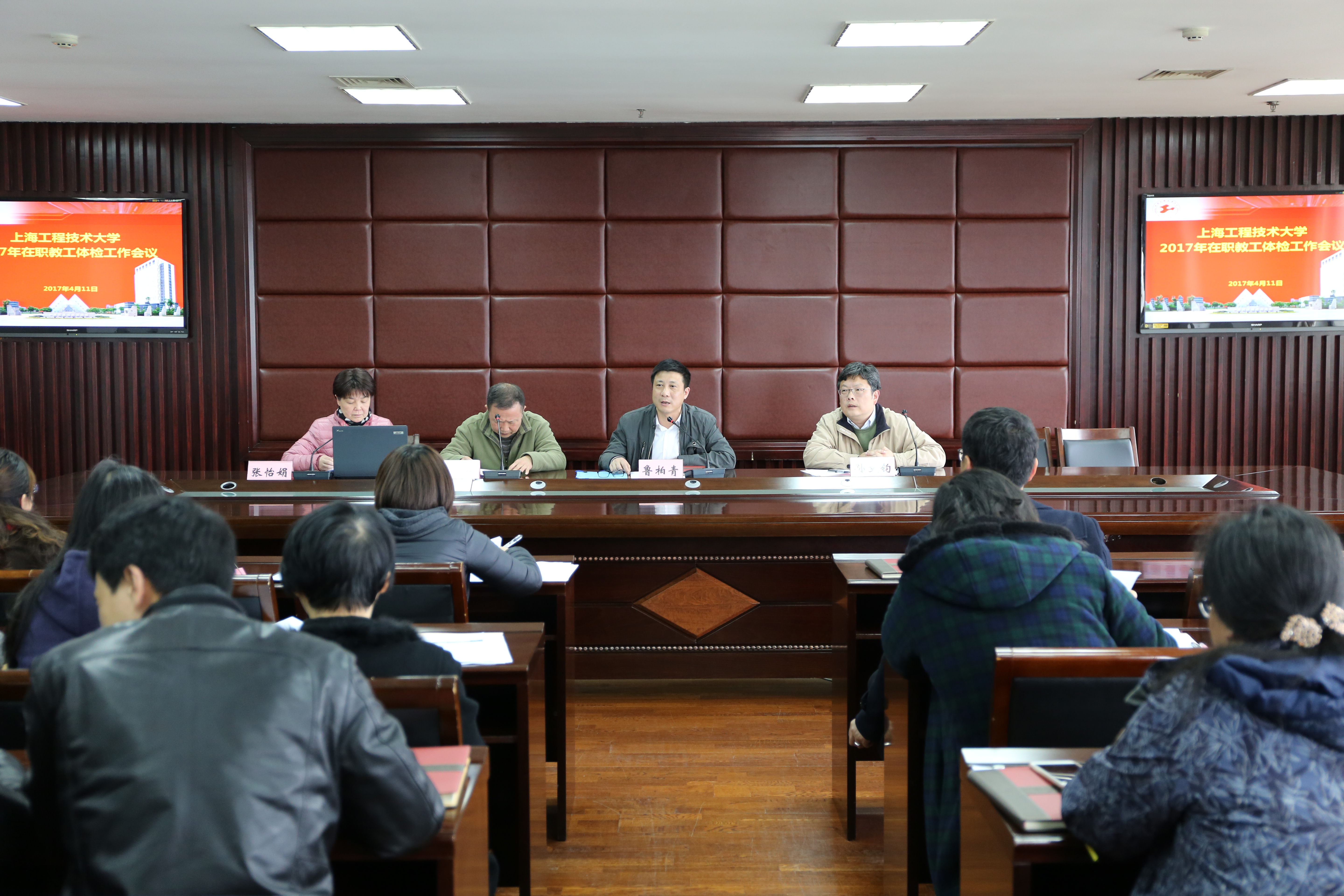 为了更好地做好2017年在职教工的体检工作,4月11日下午,学校召开了2017年在职教工体检工作会议,后发中心主任鲁柏青,机关党委副书记孙文钧,各学院、直属单位办公室主任、部处室秘书或内务人员参加了会议,会议由后发中心副主任周斌主持。