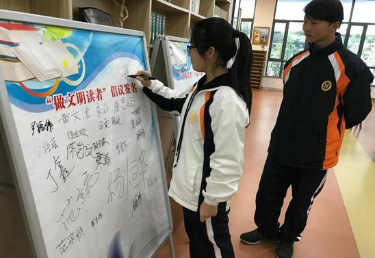 图书馆实行了一系列新举措:一是营造文明阅读氛围:在醒目处有序张贴温馨、警示标识20多块、各楼层张挂《阅览管理细则》,制作《争做文明读者阅读号牌》等,提醒读者文明阅读、优化学习环境。二是分区阅览杜绝干扰:设一楼为全静音区,并分中职和高职两个区域;三楼白天为讨论区,晚间和周末则开放综合楼108教室作为讨论区。通过警示引导分区,阅读环境发生极大改变,受到师生们的赞许。三是读者签到入馆:凭校园卡到管理台换取《争做文明读者阅读号牌》,阅读结束凭号牌换回校园卡离开。通过入馆签到与拿牌给读者以仪式感和警示作用、平复因外界喧嚣而带来的高涨情绪、更快地进入安静阅读的气氛中。四是组织“创文明读者活动月”:悬挂“做文明读者 创优良学风”横幅、以读书社团名誉向全校读者发起《争做文明读者倡议书》、《争做文明读者签名榜》、发现文明读者赠与小礼品以致鼓励等。