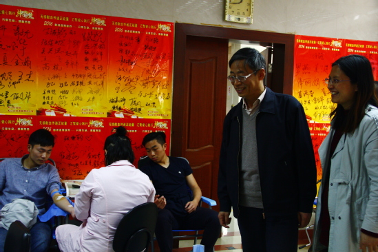 活动间隙,党总支书记刘牧众、党总支副书记万慧琳等院领导来到现场,慰问献血同学。刘书记赞扬并大力推崇了学生党员无私奉献的精神,他提到,作为一名当代大学生,我们应当有强烈的社会责任感和奉献社会的使命感,用美好的心灵捐献出健康的血液去挽救另一个生命,对于我们自己的人生来说将是一件意义非凡的事。最后,刘书记嘱咐同学们要这几天要注意休息,避免剧烈运动,使自己尽快恢复最佳状态。