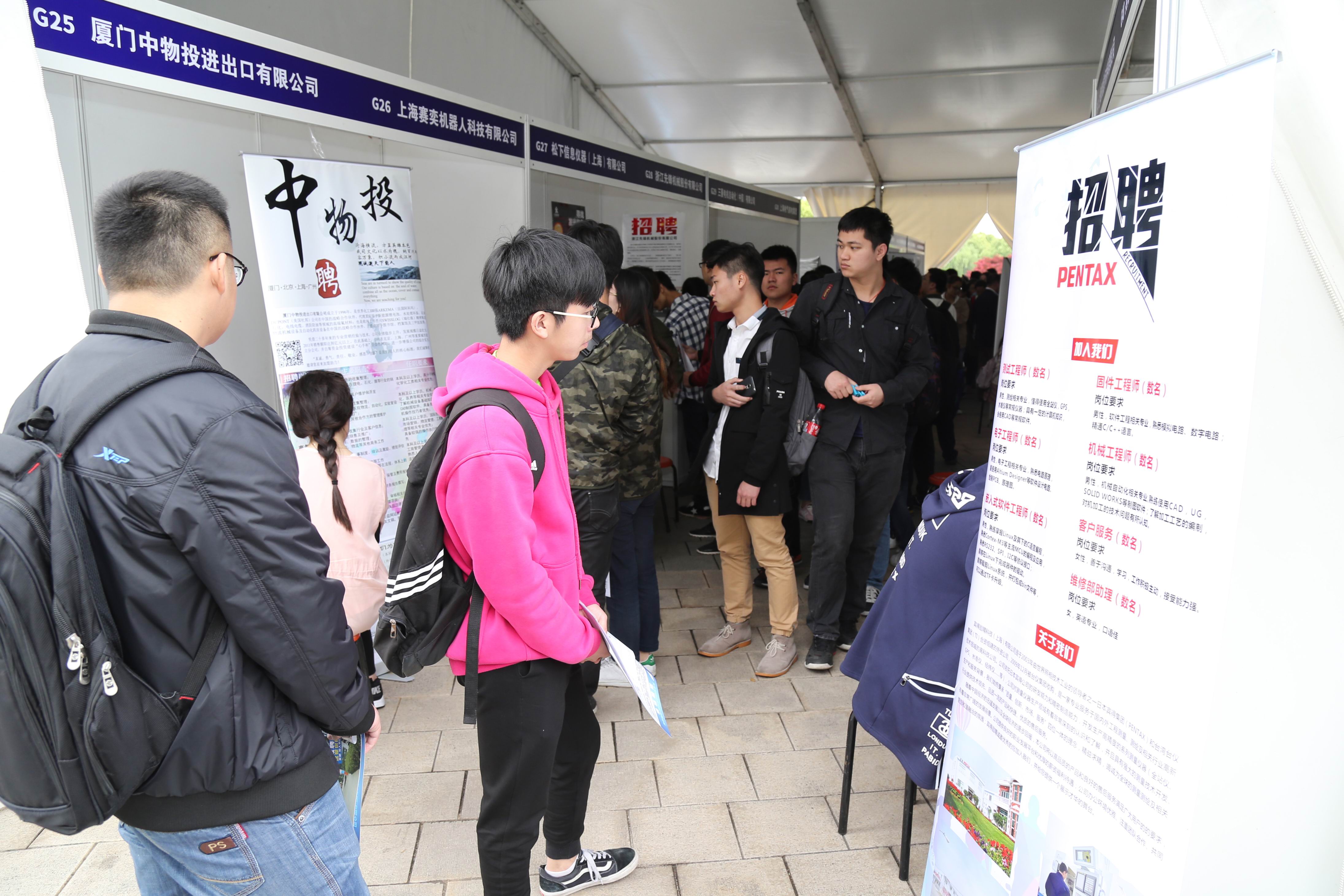 为弘扬学校产学合作教育办学特色、促进2017届毕业生充分就业,学校于4月26日在松江校区图文信息中心博学广场举行2017年上海工程技术大学产学合作教育双向见面会暨毕业生春季专场招聘会。