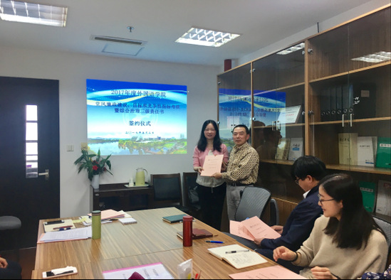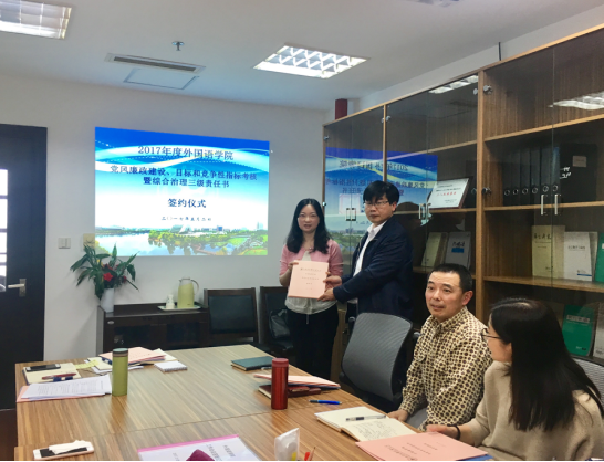 5月2日下午,外国语学院在行政楼1504会议室举行了2017年度党风廉政建设、目标考核暨综合治理三级责任书签约仪式,学院党政班子成员、各系部/室主任和支部书记参加了会议。