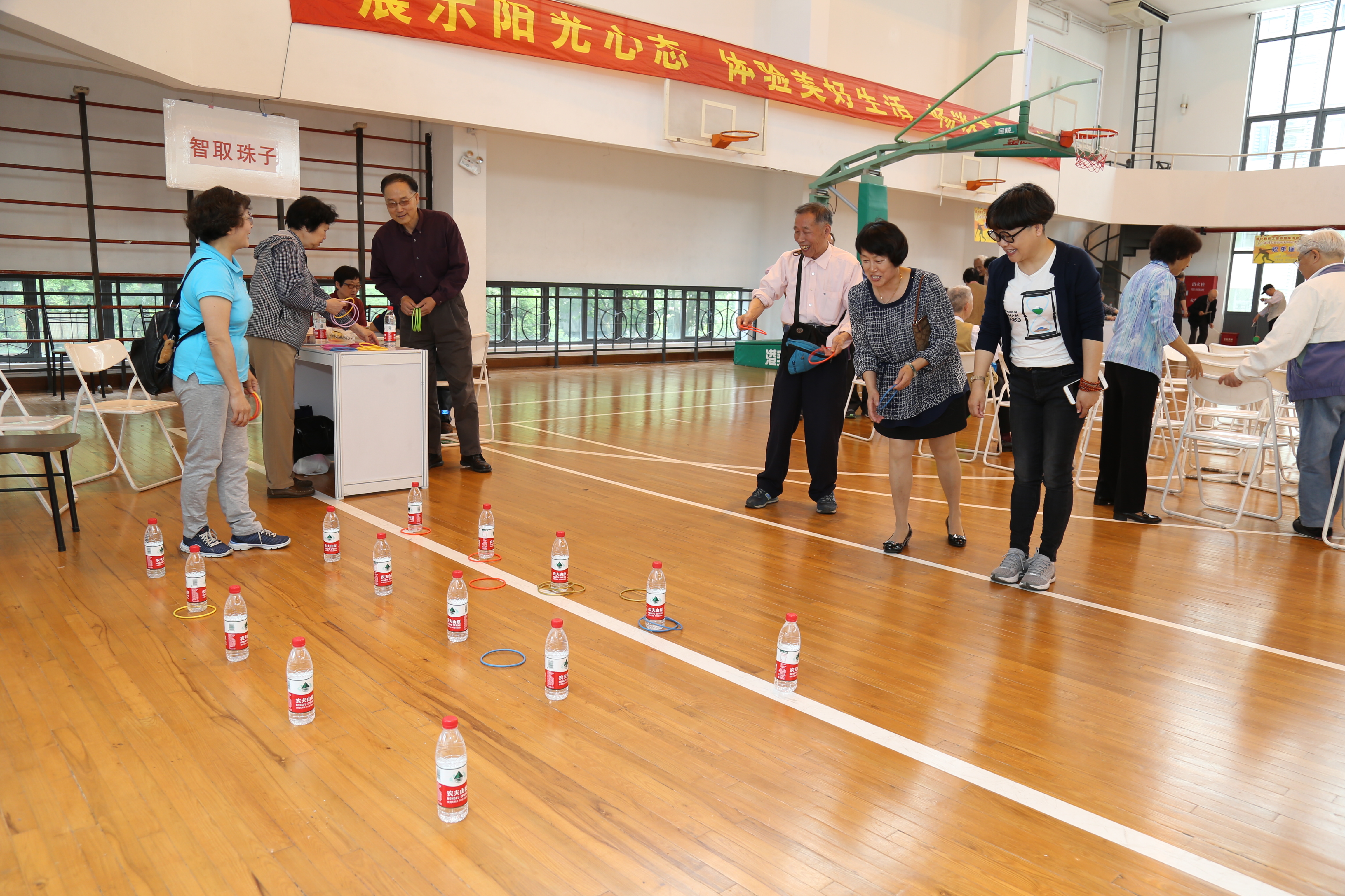 最后,夏斯云副书记为健身趣味赛“快乐门球”第一杆发球。本次健身趣味赛设置了“蒙眼画画”、“神投飞镖”、“开心套圈”、“巧手挟球”、“智取珠子”、“快乐门球”等15个活动项目,形式多样,老同志们饶有兴趣地参加各个活动项目,场内一片欢声笑语。为增添健身趣味活动的乐趣,在活动间隙进行了抽奖,活跃了气氛,场面其乐融融。许多老同志久别相遇,亲切问候和交流,笑逐颜开,心情舒畅,充满了温馨、快乐和感动。