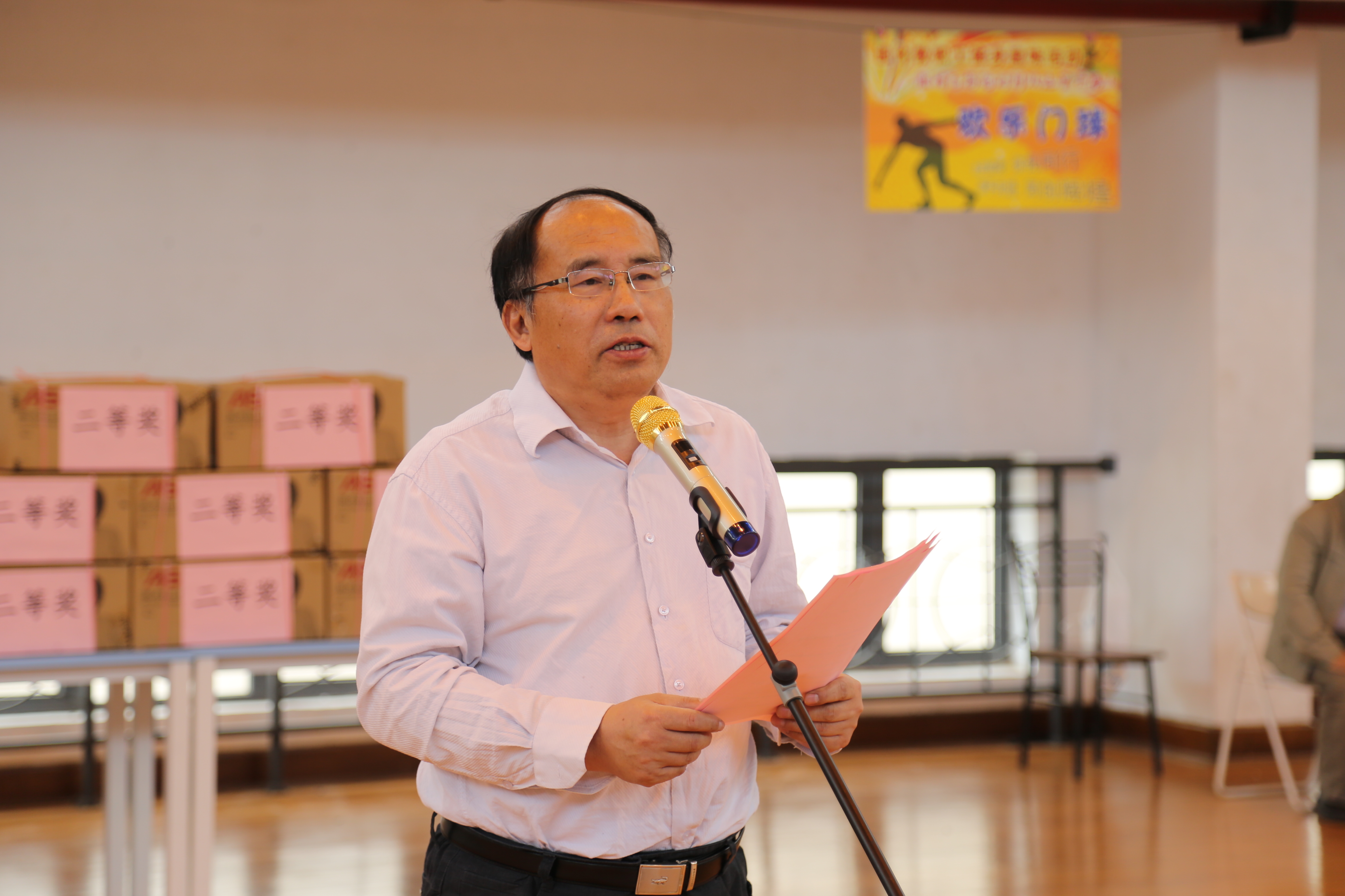 5月19日上午,生机盎然的五月,学校2017年退休教职工健身趣味赛在长宁校区综合楼二楼篮球房举行。退休教工党总支成员、退休支部书记支委、部分退休党员、退休教职工代表共200余人欢聚一堂,共享健身运动的快乐。校党委副书记、校工会主席、校退管会主任夏斯云出席健身趣味赛开幕式并致辞。校工会常务副主席、退休教工党总支书记柳如荣主持开幕式。