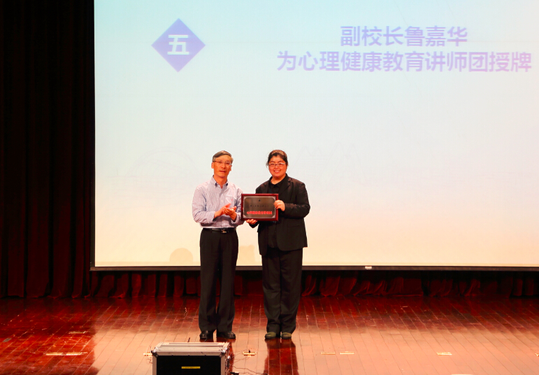 副校长鲁嘉华为心理健康教育讲师团授牌并发表讲话。他对学生心理辅导中心成立20周年表示祝贺,肯定了中心在20年探索发展的过程中为我校学生心理健康教育工作做出的重要贡献和取得的突出成绩,他希望中心以此为契机,认真落实习近平总书记在全国高校思想政治工作会议上的讲话精神,在今后的工作中从围绕学生、关照学生、服务学生三方面不断努力,加强建设,维护学生心理健康,为促进学生成长成才和学校教育事业的和谐发展不断做出新贡献。