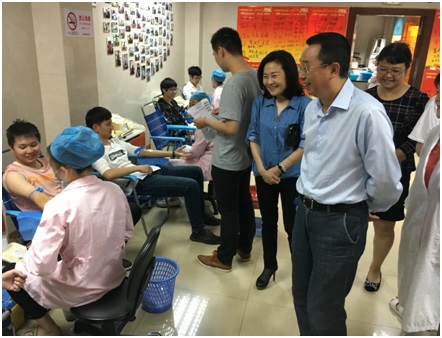 学校及学院的党政领导高度重视本次无偿献血工作,我校副校长姚秀平,在学院党委书记陆展华、副院长李媛媛、工会主席施一萍的陪同下,一早来到血站慰问参与无偿献血的师生和辛苦工作的志愿者们。姚秀平副校长对学院无偿献血的组织工作,及现场学生积极献血的热情给予了高度赞扬,他仔细询问同学们献血后的身体情况,并且叮嘱同学们要多注意休息,合理安排作息时间。学院党委书记陆展华老师代表学院向参与献血的师生们表示感谢,她亲切慰问了有晕血症状的同学,并一再叮嘱要注意观察,返校后注意休息和饮食。