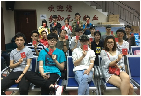 学院团委学生会为了缓解献血现场大家紧张的情绪,组织了一批“文艺团”为同学们弹琴、唱歌、讲笑话,被歌声和琴声笼罩的血站休息室一改往日低沉的气氛,女同学眼角强忍的泪珠破涕为笑,晕血者煞白的脸色逐渐容光焕发。很多同学们一手按住献血后的针眼,一手用手机拍下自己与红色献血证的合影,在朋友圈中与人分享自己奉献爱心的喜悦。