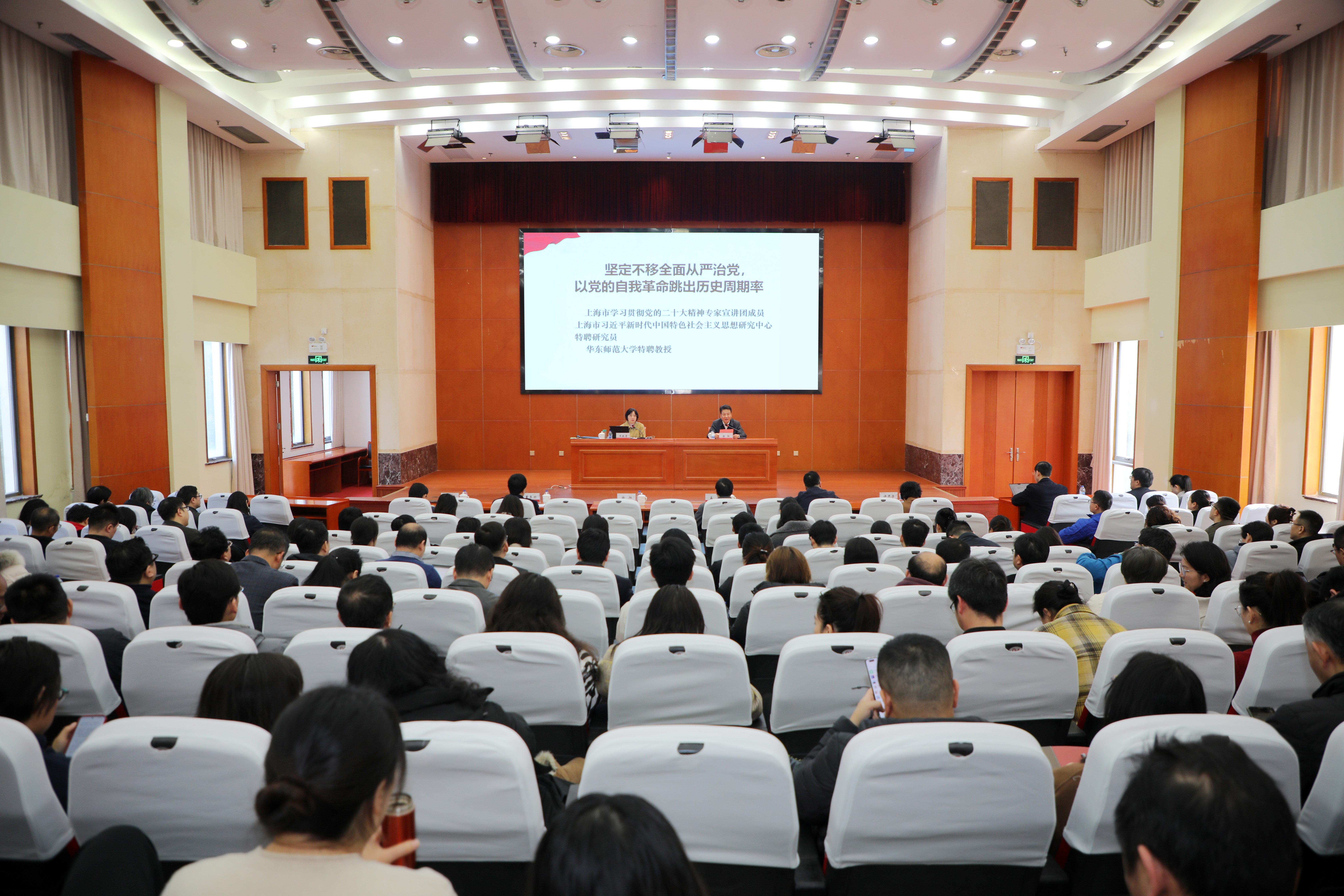 2月28日上午,学校举行党委理论学习中心组(扩大)学习会,特邀华东师范大学二级教授、特聘教授,博士生导师周敬青作《坚定不移全面从严治党,以党的自我革命跳出历史周期率》专题辅导报告。校党委理论学习中心组成员,全体中层干部,辅导员代表参加会议,会议由校党委副书记、副校长徐阳主持。周敬青教授从开辟百年大党自我革命新境界,新时代党的建设总要求、新布局、新路径,把握习近平总书记关于党的建设、自我革命重要思想的核心理念三个方面展开报告,并详细阐述坚定不移全面从严治党、深入推进新时代党的建设新的伟大工程“七大部署”,强调党员干部必须高度警省,永远保持赶考的清醒和谨慎,驰而不息推进全面从严治党,使百年大党在自我革命中不断焕发蓬勃生机,始终成为中国人民最可靠、最坚强的主心骨。周教授的报告系统翔实,逻辑清晰,紧密结合实际,具有很强的现实指导意义。徐阳副书记、副校长在主持会议中强调,学校广大党员干部要以本次学习为契机,强化理论武装,筑牢思想根基;勇于担当作为,落实工作责任;聚焦主责主业,推动学校高质量发展,将全面从严治党要求落实到工作的各个方面,以实际行动推动学校高质量发展,为实现教育强国目标贡献力量。