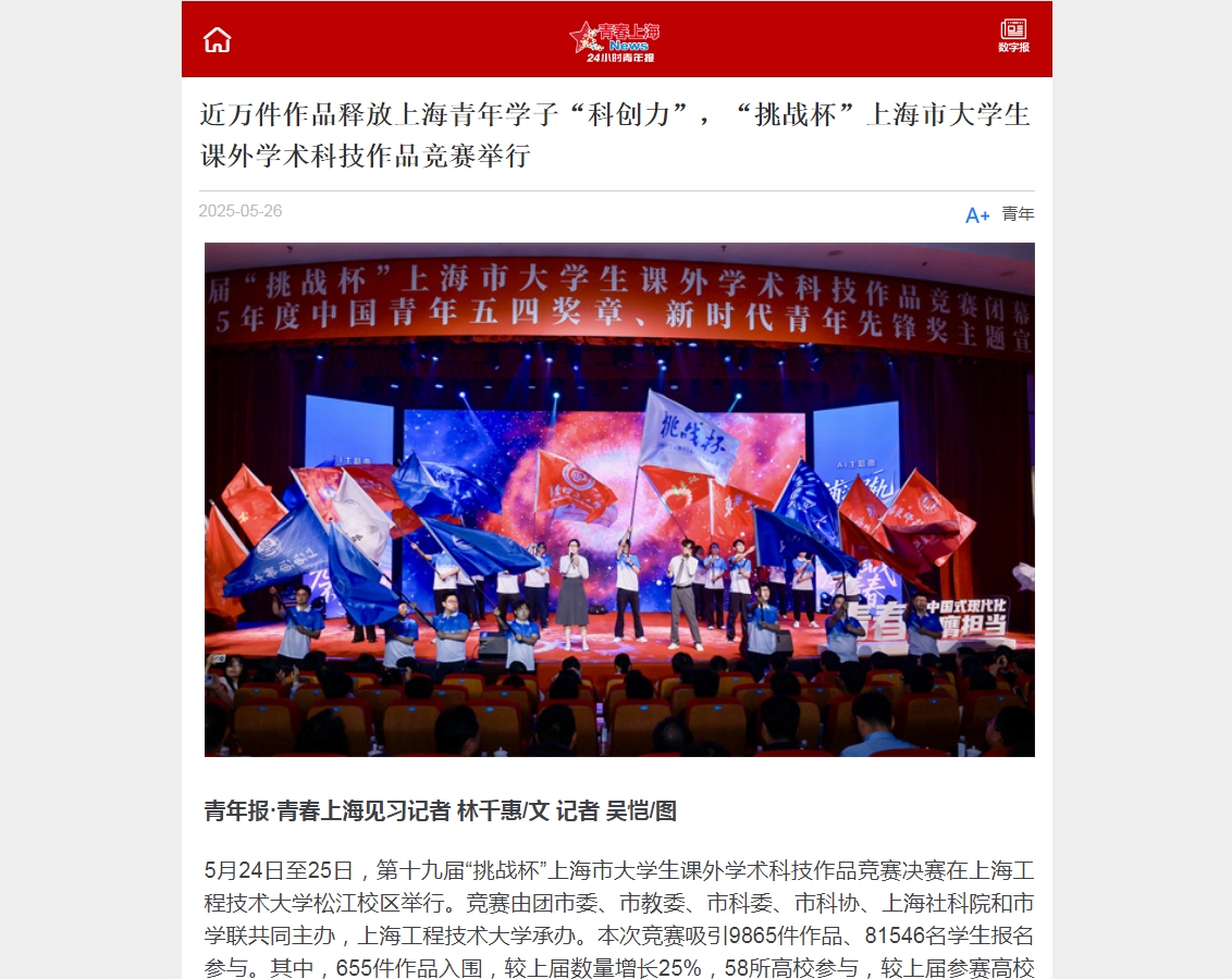 近万件作品释放上海青年学子“科创力”,“挑战杯”上海市大学生课外学术科技作品竞赛举行