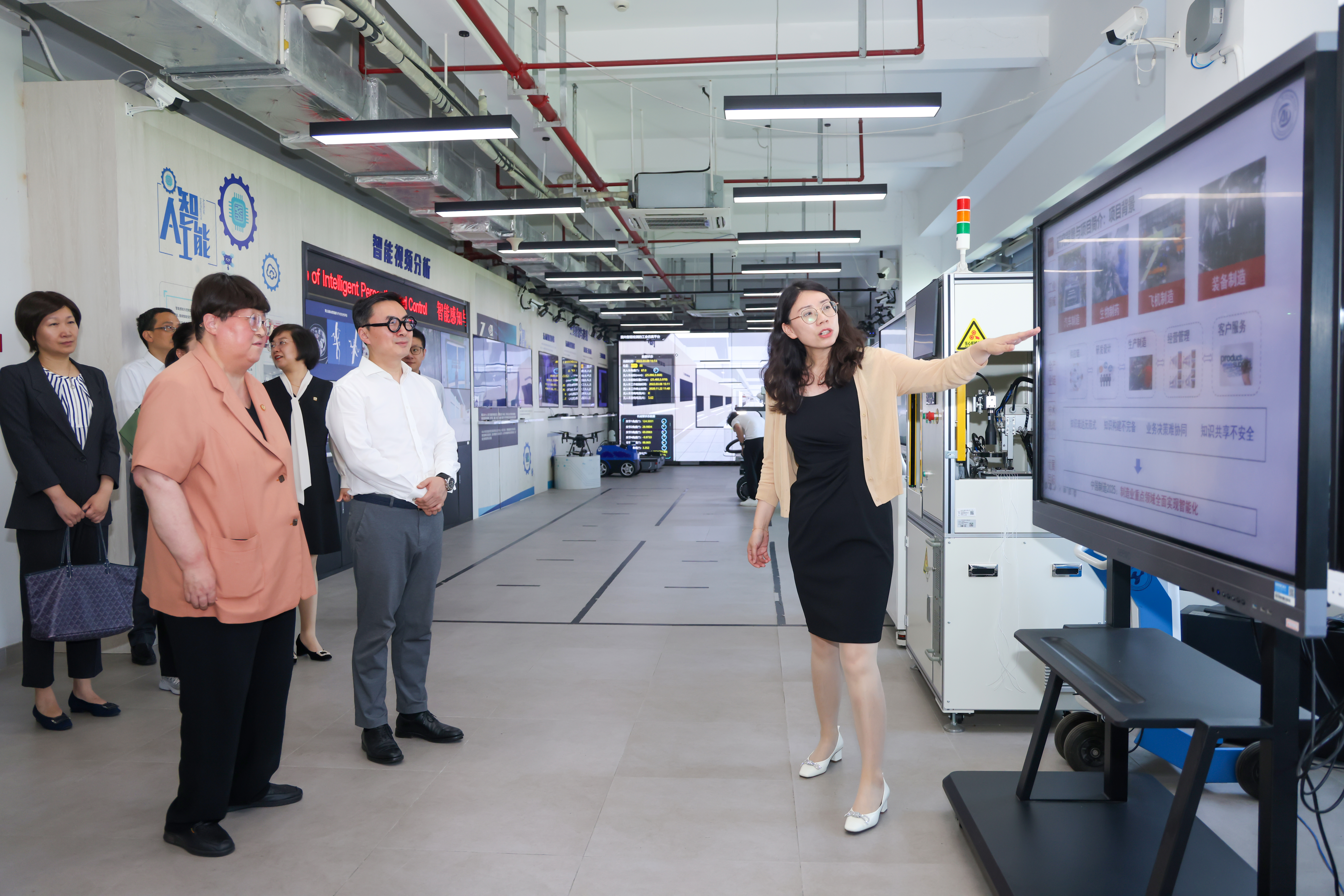 签约仪式前,汪泓院长一行参观了我校电子电气工程学院人工智能实验室和材料科学与工程学院集成电路实验室,听取了上海工程技术大学未来基础建设项目设计方案的介绍。