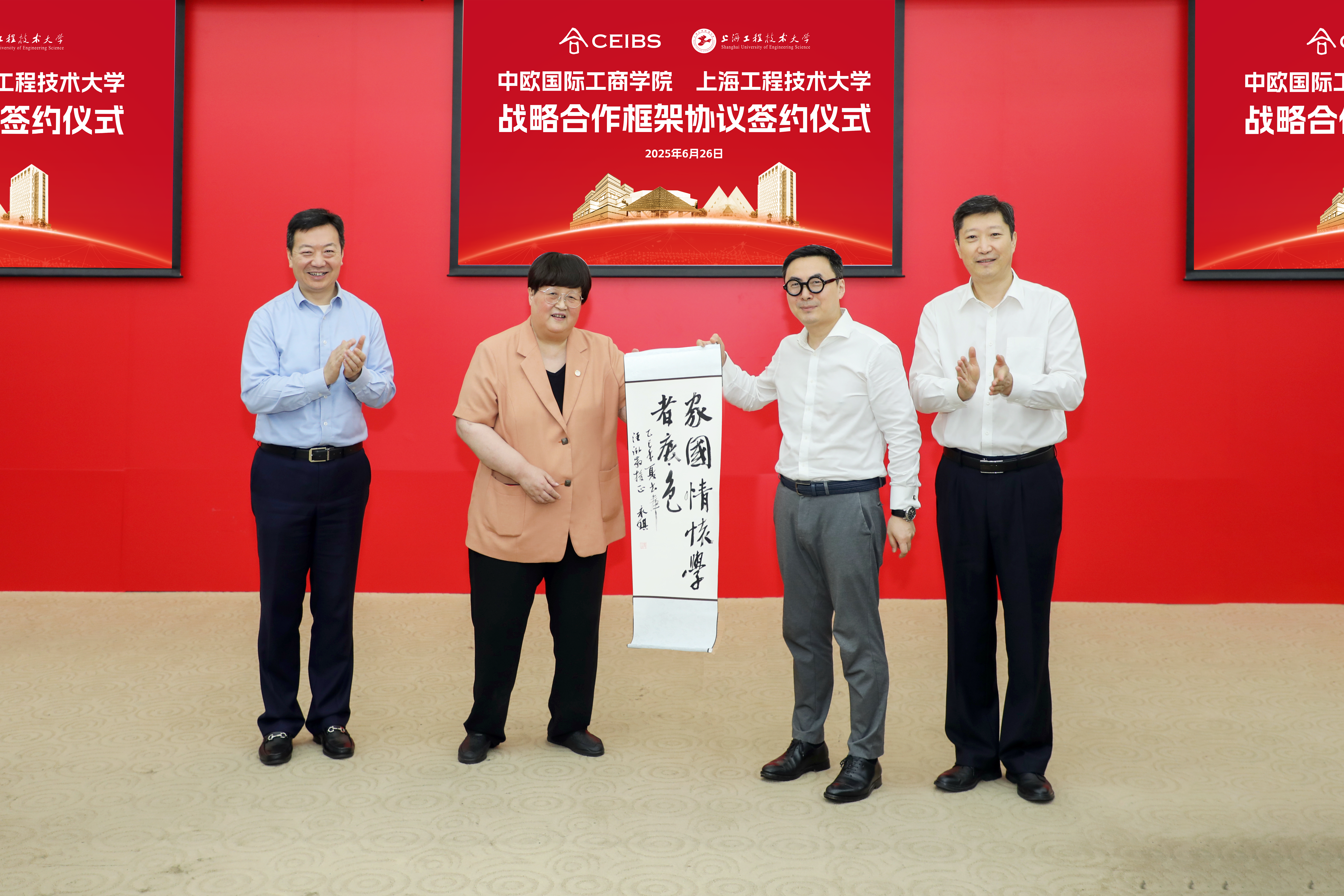 6月26日上午,上海工程技术大学与中欧国际工商学院战略合作框架协议签约仪式在我校松江主校区隆重举行。中欧国际工商学院由中国政府和欧洲联盟于1994年共同创立,是中国唯一一所由中外政府联合创建的商学院,也是全国排名首列的国际顶尖商学院,在全球享有盛誉。此次合作签约,标志着两校在服务国家战略、共育时代新人、共攀学术高峰上开启了崭新篇章。