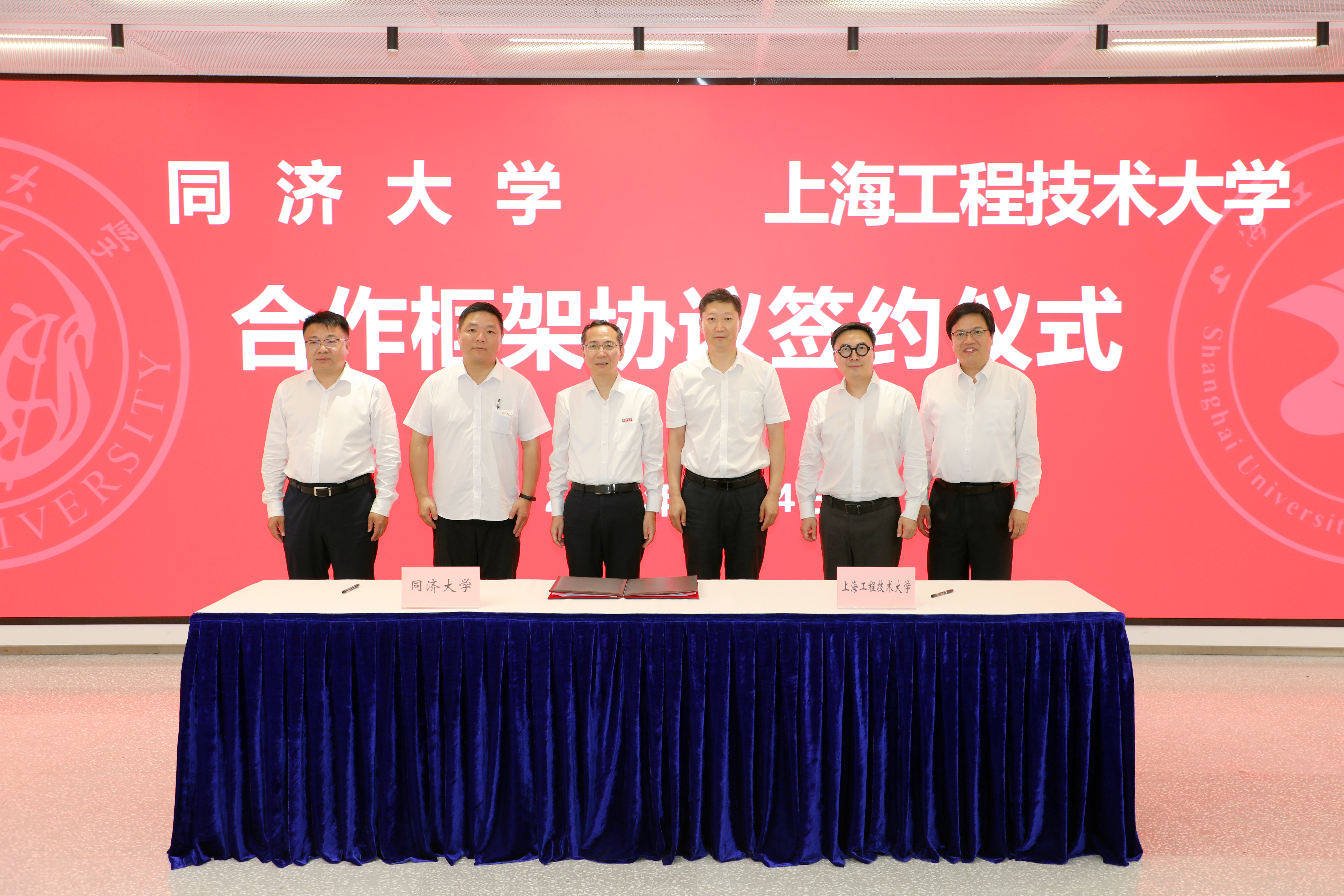 9月14日上午,我校与同济大学合作框架协议签约仪式在同济大学四平路校区中法中心举行。同济大学校长、中国科学院院士杨金龙,上海工程技术大学党委书记李江,校长娄永琪,党委常委、副校长夏春明,同济大学校长助理、科学技术研究院院长冯世进以及两校相关职能部门负责人出席活动。活动由同济大学党委常委、副校长李翔宁主持。
